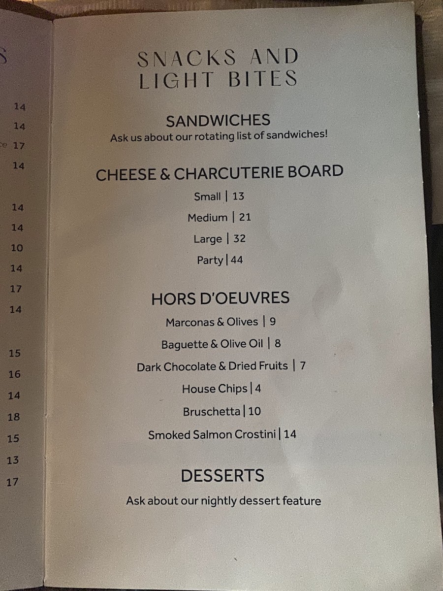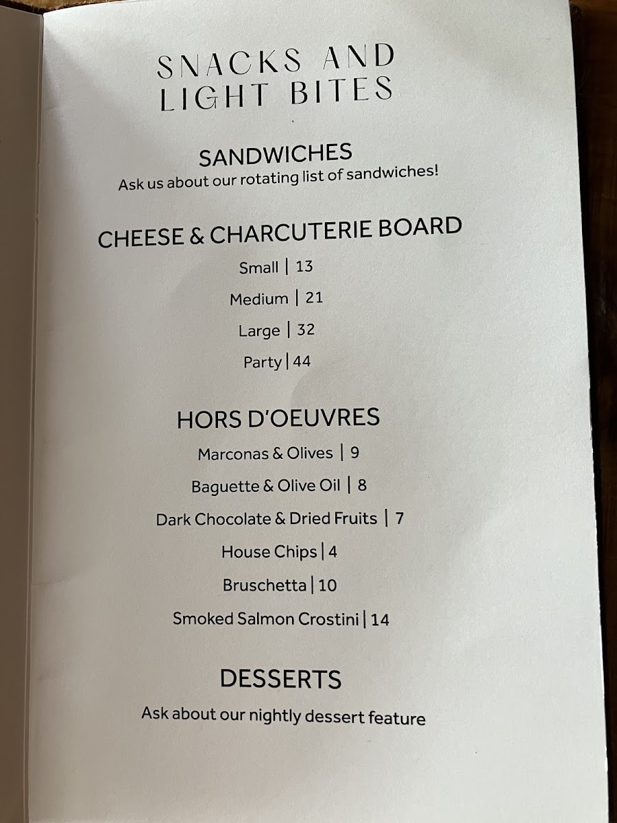 For those looking for a light bite, the Cheese & Charcuterie Board impresses with an elegant composition, accompanied by delightful sides such as Marconas & Olives ($5) and Dark Chocolate & Dried Fruit ($4). Pair your culinary choice with a selection from their extensive wine list or customize a flight that suits your taste.