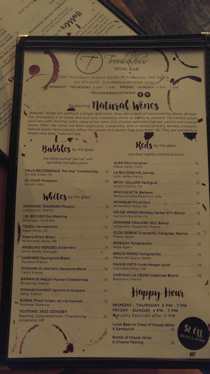 Welcome to Troubadour Wine Bar, a charming gem nestled in the heart of Minneapolis. This cozy haven, located at 2827 Hennepin Ave, offers an intimate setting perfect for dates or casual outings with friends. The highlights of the menu include mouth-watering sandwiches like the Croque Troubadour and the savory Toasted Cheese Steak, each priced at just $10.00.